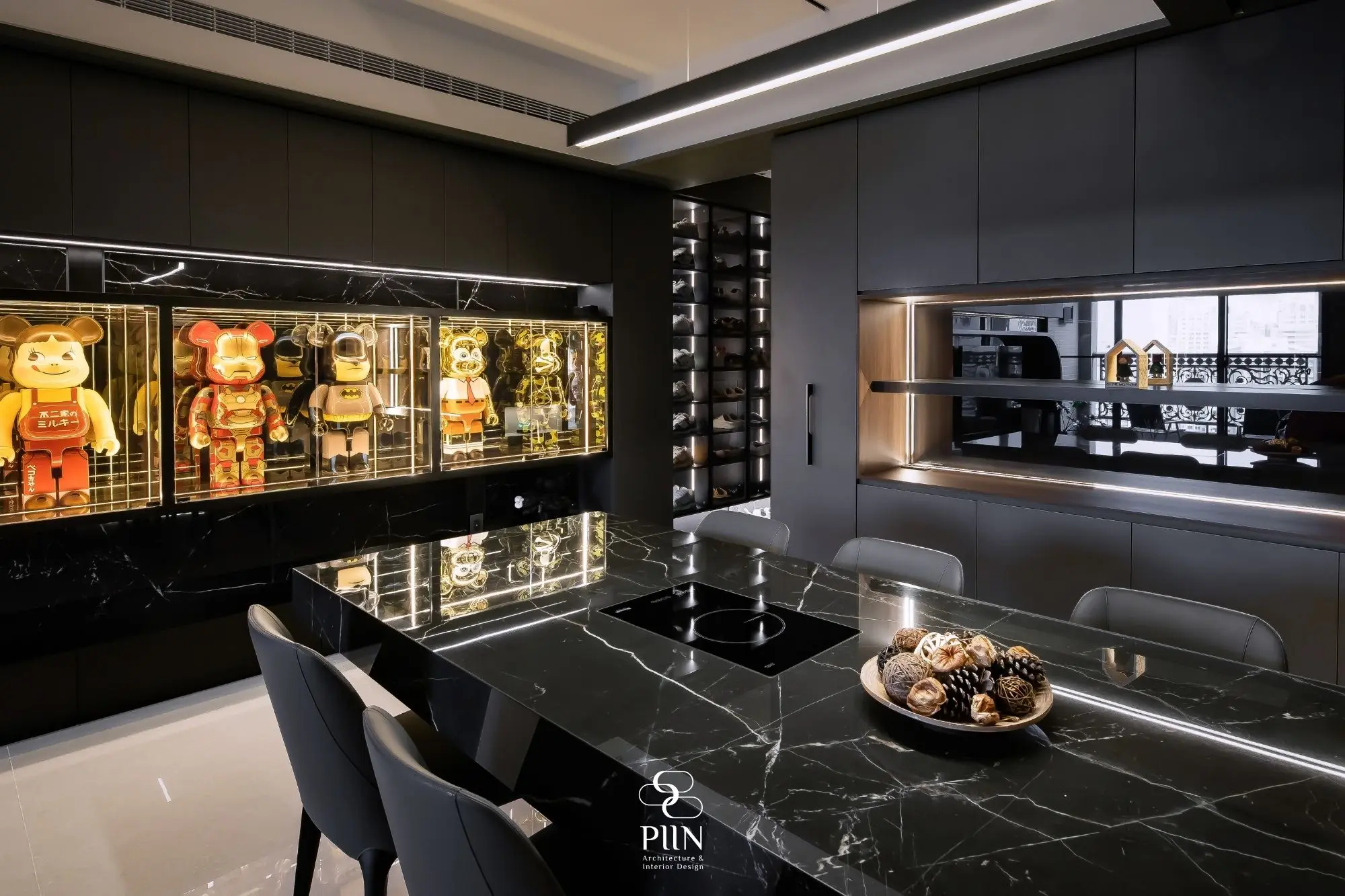 在收藏文化逐漸成熟的今日,公仔、藝術雕塑與畫作早已跳脫「擺放」的層次,轉而追求如同藝廊般的陳列品質。尤其在高端住宅設計中,「深色系公仔宅」成為近年極具辨識度的風格之一。