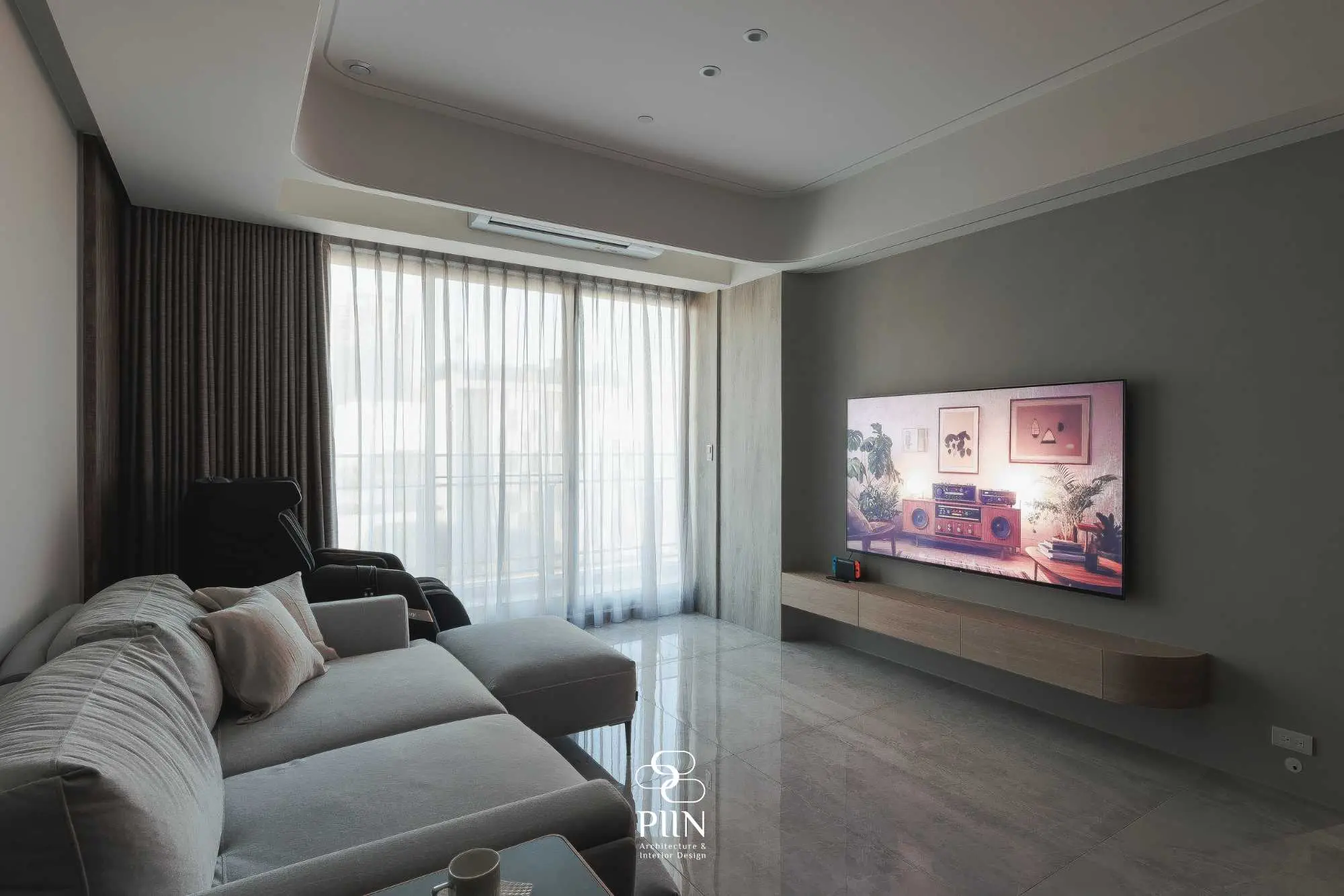 客廳:特殊塗料延伸,灰階中的簡約日常
